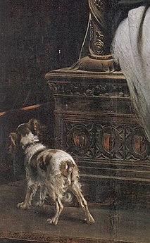 Rockwell connaissait-il Les enfants d’Edouard (2, fig.8)? Lorsque l’on songe à l’importante diffusion des œuvres de Paul Delaroche par l’éditeur Goupil, qui touche les Etats-Unis dès la fin du XIXe siècle, au point d’en faire l’un des artistes européens les plus connus dans l’imagerie populaire, l’hypothèse reste tout à fait plausible. Le parallèle entre les deux tableaux offre en tous cas un prolongement assez captivant. La nature du sujet – la violence implicite – et le lieu de l’action – Londres – renvoient bien sur à la tragédie évoquée dans Freedom from fear : en l’occurrence, la mort d’enfants innocents sous les bombes allemandes. Mais le rapprochement se poursuit si l’on prête attention aux foyers lumineux situés à l’arrière-plan : chez Rockwell, derrière l’embrasure de la porte, l’espace vertical baigné de la couleur chaude et dorée de la cage d’escalier; chez Delaroche, le mince filet de lumière qui jaillit sous la porte, annonciateur du terrible dénouement que seul le chien semble avoir pressenti (fig.9). A la lecture de cette association, deux interprétations peuvent être avancées : Ou bien, Rockwell reprend l’allusion dramatique de Delaroche en reconnaissant dans la lumière chaude de la cage d’escalier le brasier des bombardements londonien. Dans cet ordre d’idée, on envisage alors le positionnement des parents (qui tournent le dos à l’escalier) comme l’expression psychologique d’un repli sécuritaire.