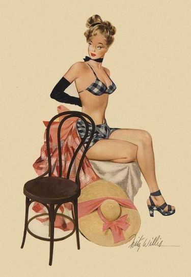 Et Fritz Willis ? Dans cette nébuleuse pour le moins hétérogène, Willis, outre son indéniable position d’indépendant, apparait bien comme un artiste tardif, dans la mesure où les pin ups qui ont consacré son style datent essentiellement des années soixante.