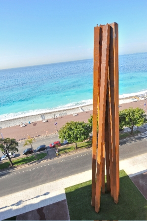 J’avais aussi oublié avec la ligne du tramway – de toute évidence, la grande affaire de Nice, depuis son rattachement à la France – et ces « quinze artistes de renommée internationale ( toujours cette obsession d’une bourgeoisie frileuse qui use de la reconnaissance comme d’une garantie après-vente) qui investissent l’espace urbain… » et dont les inepties authentiques déguisées en blabla pontifiant ponctuent chacune des stations. Lorsque l’on apprend que « la communauté d’agglomération Nice Côte d’azur a confié à un comité d’experts composé de personnalité nationales et internationales » le soin d’opérer la sélection des quinze élus sur « deux-cent-dix-huit candidatures venues du monde entier » on reste confondus…